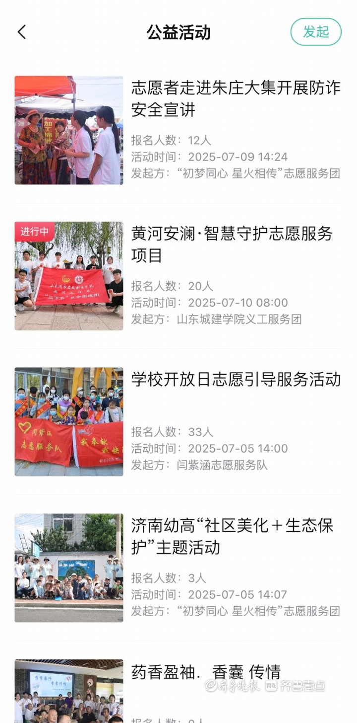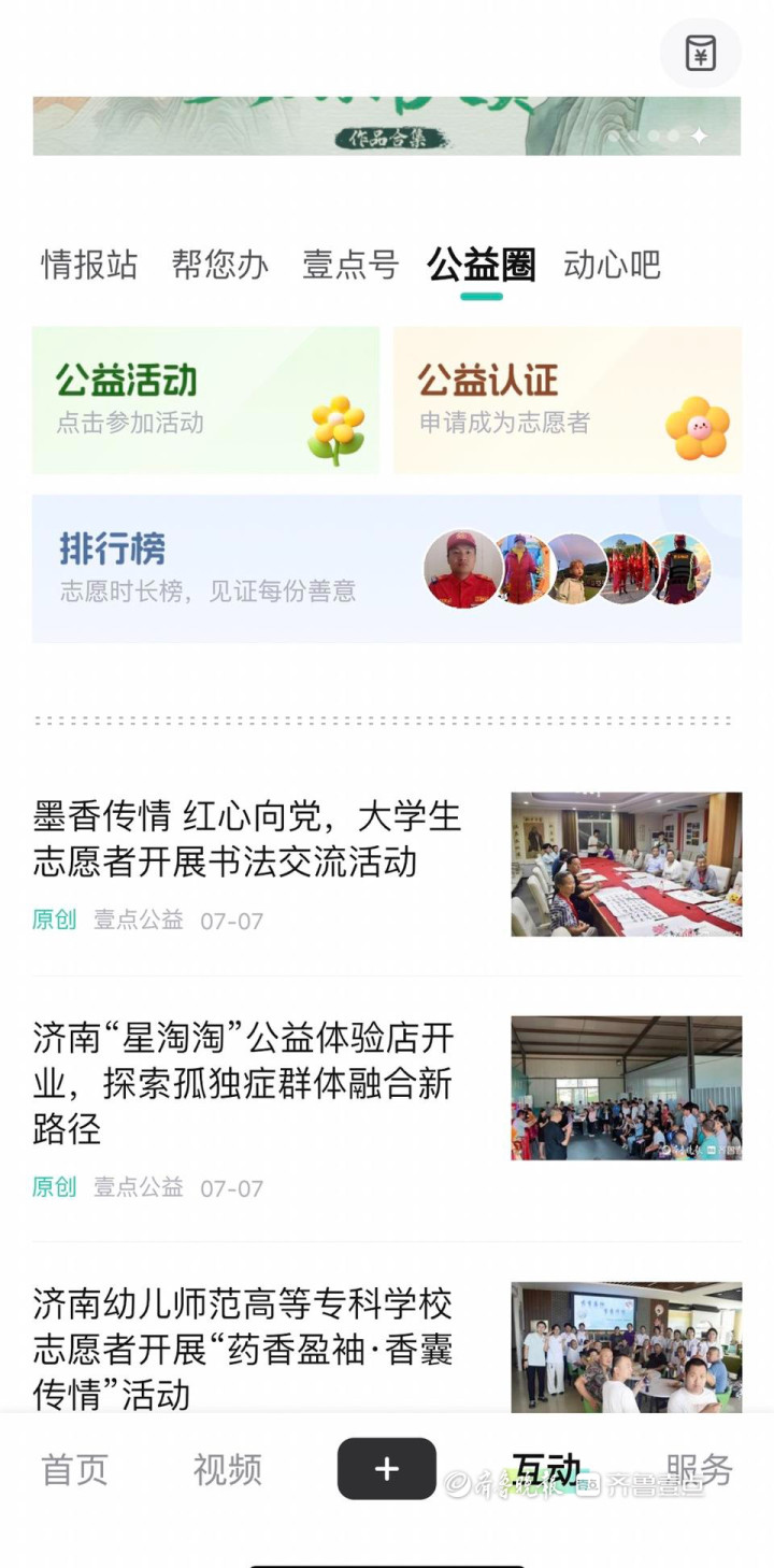 用户进入互动板块之后,点击“公益圈”,公益活动的窗口一目了然,所有正在招募志愿者或即将开展的公益活动都在此集中展示,无论是关爱环卫工人的送清凉活动,还是图书馆图书整理活动,用户都能一键查看详情并报名参与。